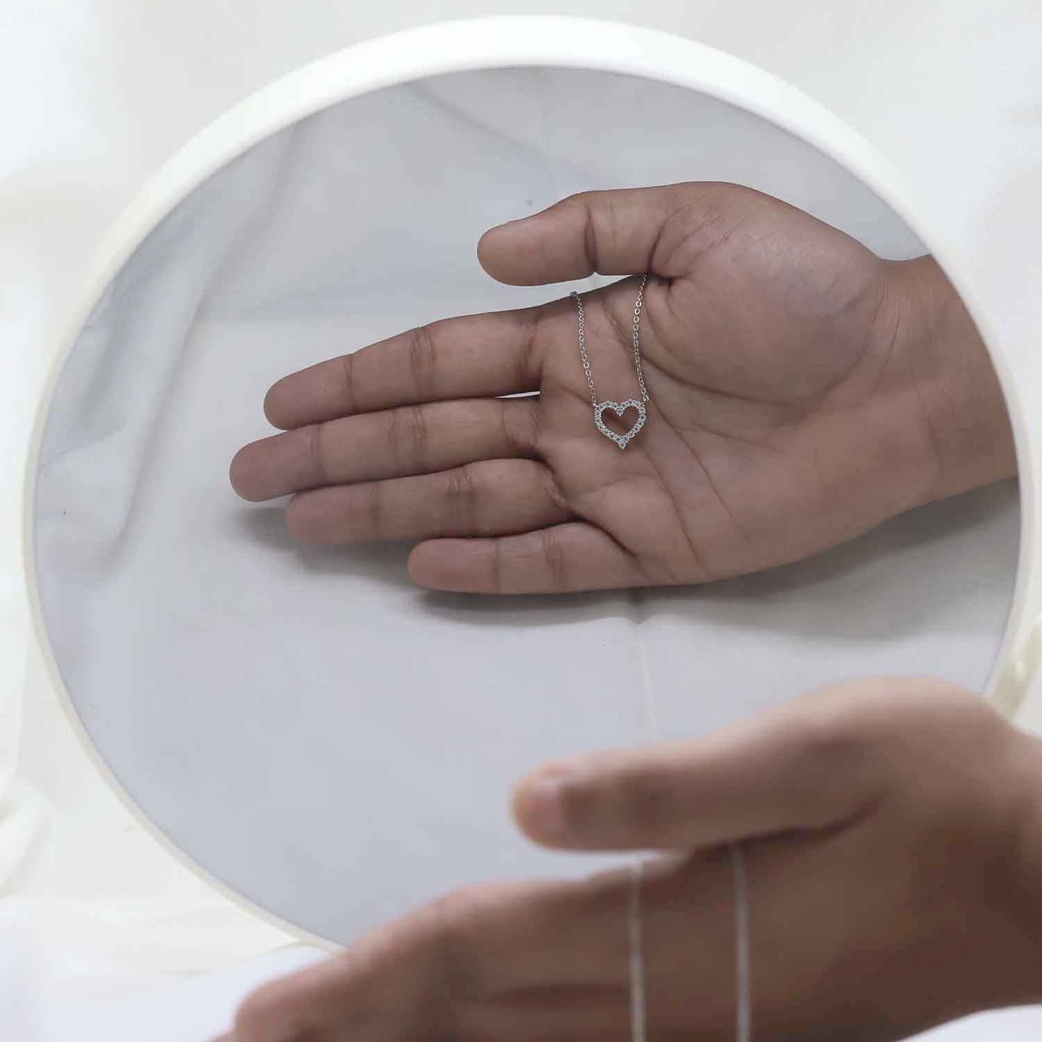 The Heart of Round Diamond Pendant in White Gold